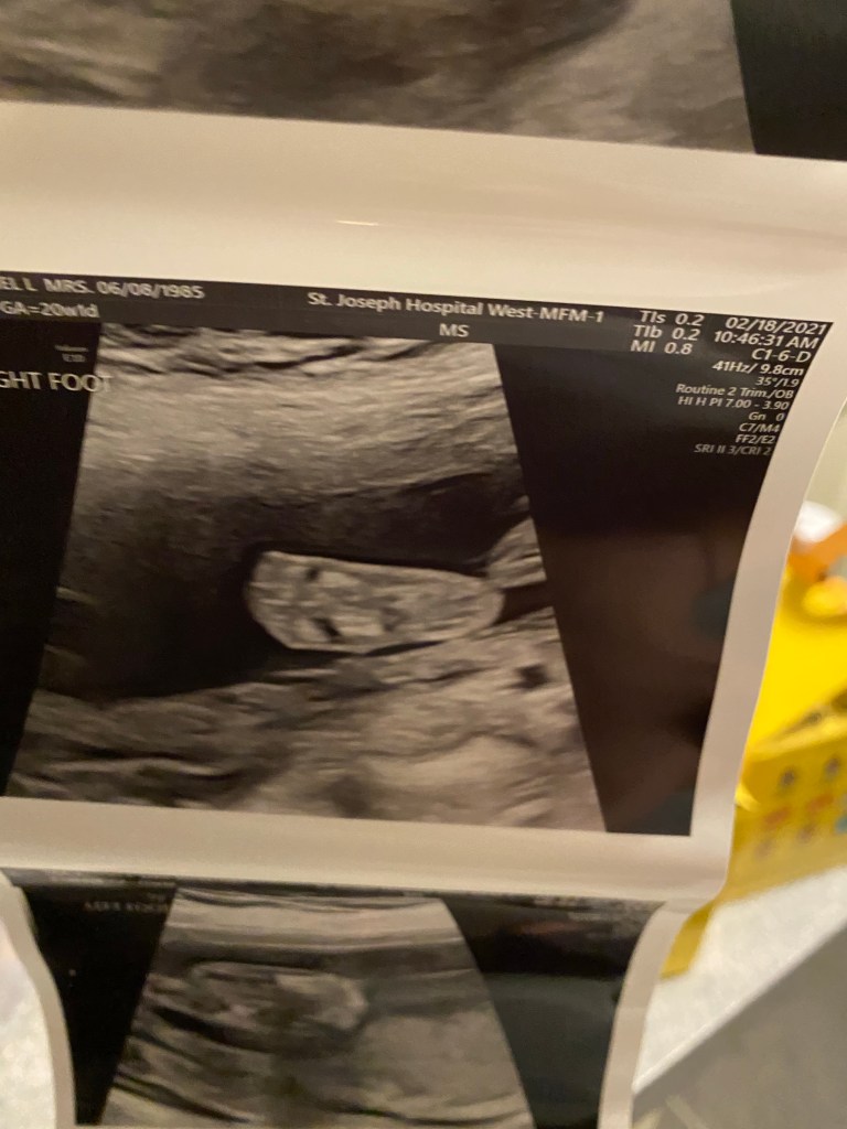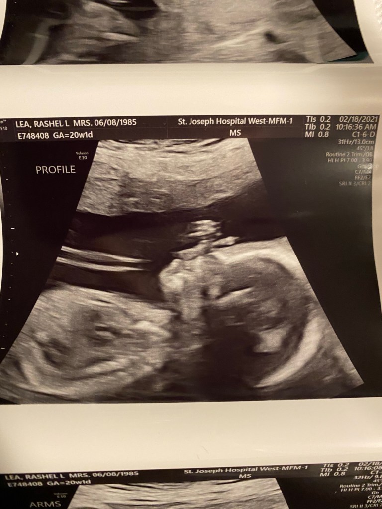 Today was the 20 week ultrasound at the MFM office at the hospital because now at 36 I’m an old pregnant lady. 😂 It was a long appointment and they looked at everything. We got mostly great news. He looks so perfect in there. He has sweet little lips and loves to move his arms and legs. I loved watching him wiggle around. He started out head down and we all know that makes me happy! But then he went transverse and then to breach! 😆 Obviously it’s still super early and he has lots of wiggle room to flip and turn and play. We could see all 4 chambers of the heart and his brain and spine they even looked at kidneys and eyes! Every square inch of this sweet boy we saw. The nurse practitioner did come in and let us know that it looks like we only have a two vessel umbilical cord. She said they normally have 3. The good news is because everything else seems perfect she said we shouldn’t really be worried. I will have to now have more appointments to watch and monitor his growth. So I will be going back every 4 weeks for a growth scan. The obvious perk is we will get to see his sweet little face more often!!! It will always amaze me how fast they grow and how perfect he looks. The screen makes him look SO big but in reality he was a whopping 12oz! A whole soda can in there. Seeing him wiggle and grow makes me love him even more and I can’t wait to see his sweet little face in 20ish weeks. Leaf was so sweet on the phone and talked about his baby brother coming. It’s so special to help a family have a baby but, it’s also so exciting to help make Leaf a big brother!!! I’m sure like any older sibling he’s going to be shocked that a new baby is there and all his normal attention has to be shared now but I just know he’s going to do great.